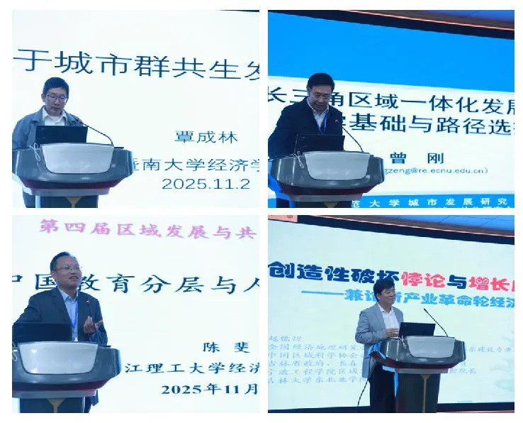 全国经济地理研究会、暨南大学覃成林教授提出,城市群共生发展的核心在于推动各城市功能互补与协同演进,实现从竞争到共生的转变;全国经济地理研究会副会长、华东师范大学曾刚教授,基于国家战略背景和目标,剖析了长三角一体化格局现状,并提出推进机制。全国经济地理研究会副秘书长、浙江理工大学陈斐教授指出,教育显著减缓人力资本折旧,高学历劳动者的人力资本更持久,凸显教育投资的长效价值。宁波工程学院区域发展与共同富裕研究院院长、全国经济地理研究会顾问、中国区域科学协会副理事长赵儒煜教授通过预期理论反思“创造性破坏悖论”,指出创新驱动增长的实际效果受消费预期刚性制约。